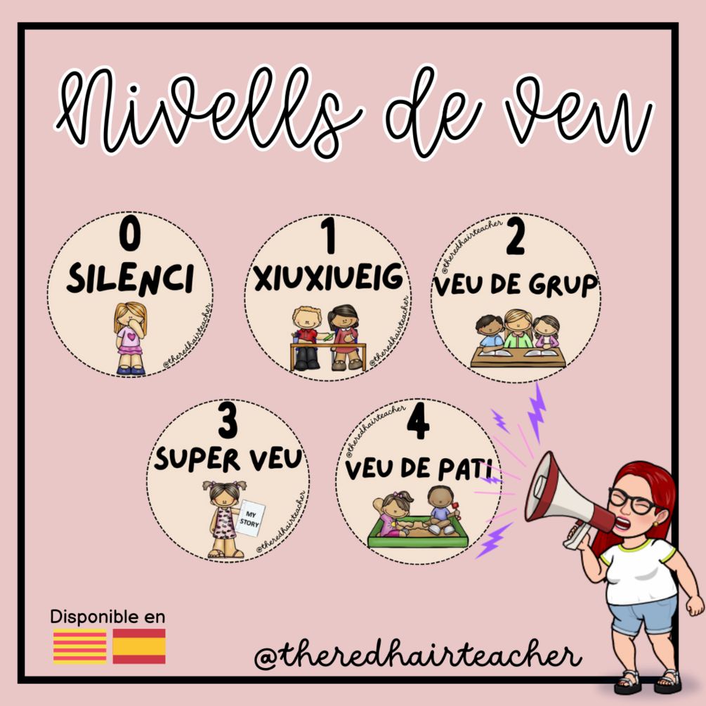 Documents pdf en castellà i català amb targetes de nivells de veu destinades a la gestió de la teva aula.